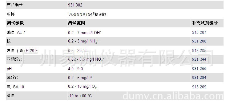 MNVISOCOLOR®檢測箱,用于檢測堿度、銨、總硬度、亞硝酸鹽、PH值、磷酸鹽、溶解氧和溫度。操作簡單、快速,即使是非專業的人員也能進行操作。廣泛用于水產養殖和水族館等行業,是水質檢測的理想產品。