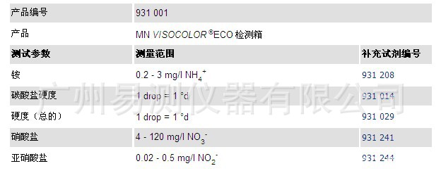MNVISOCOLOR®ECO檢測箱,用于檢測銨、碳酸鹽硬度、總硬度、硝酸鹽、亞硝酸鹽、PH和磷酸鹽7種參數。操作簡單、快速,即使是非專業的人員也能進行操作。廣泛用于水產養殖和水族館等行業,是水質檢測的理想產品。